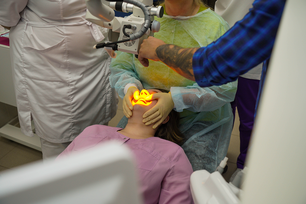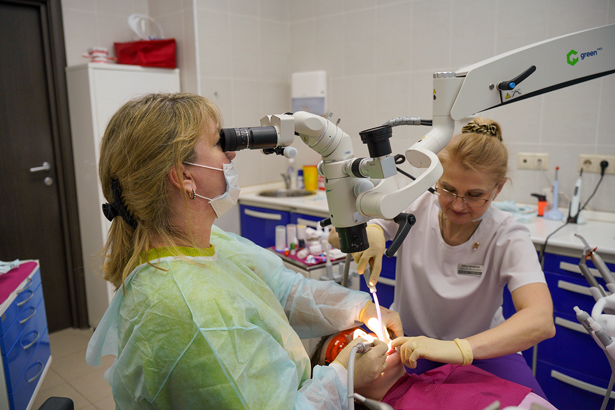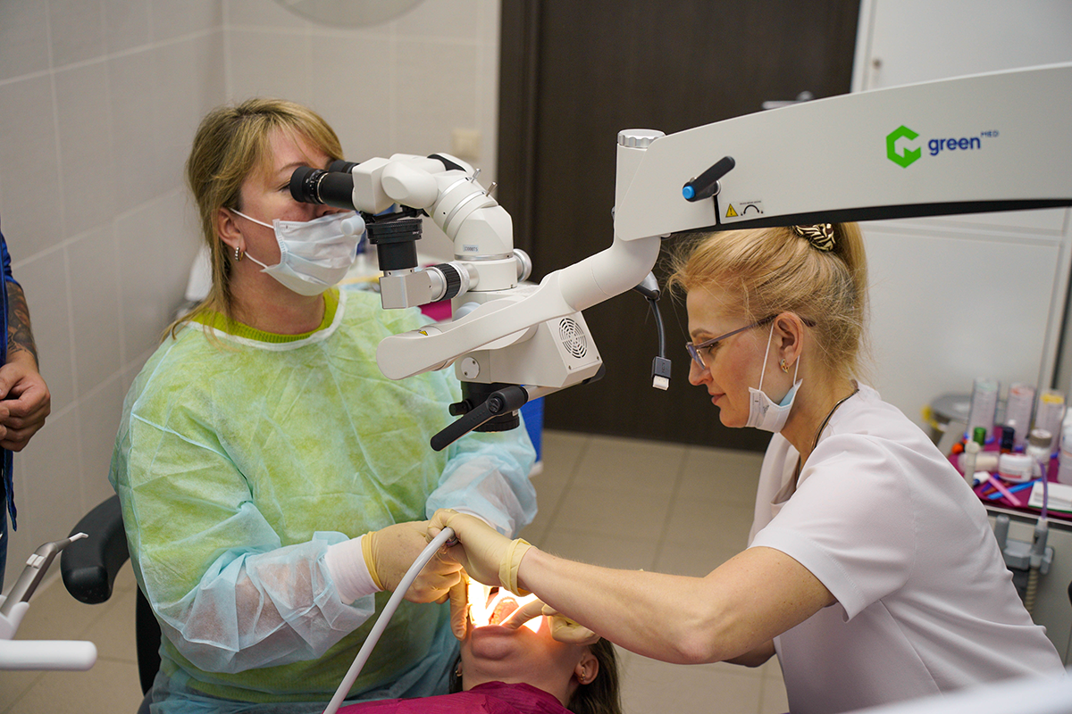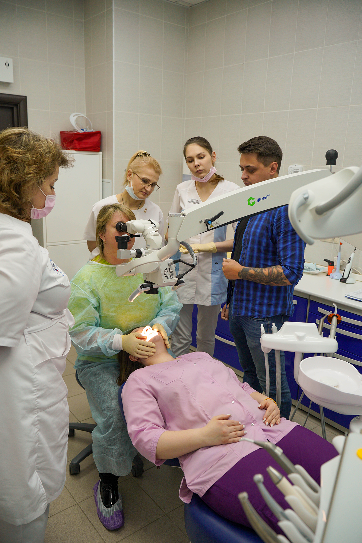 Всё просто: наш менеджер привёз инновационный стоматологический микроскоп GreenMED C-Clear, установил его и провёл обучение, на котором рассказал о всех нюансах взаимодействия с новым операционным помощником.