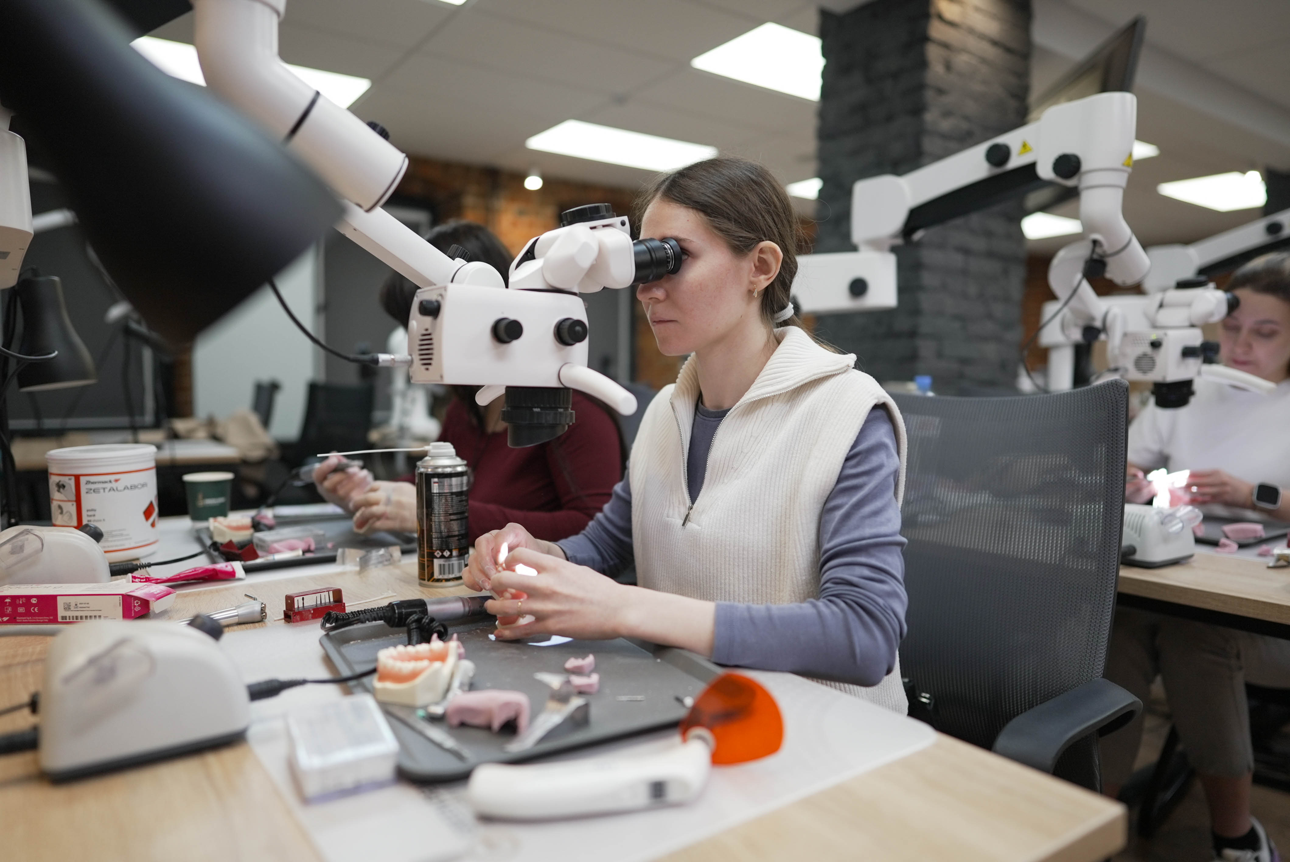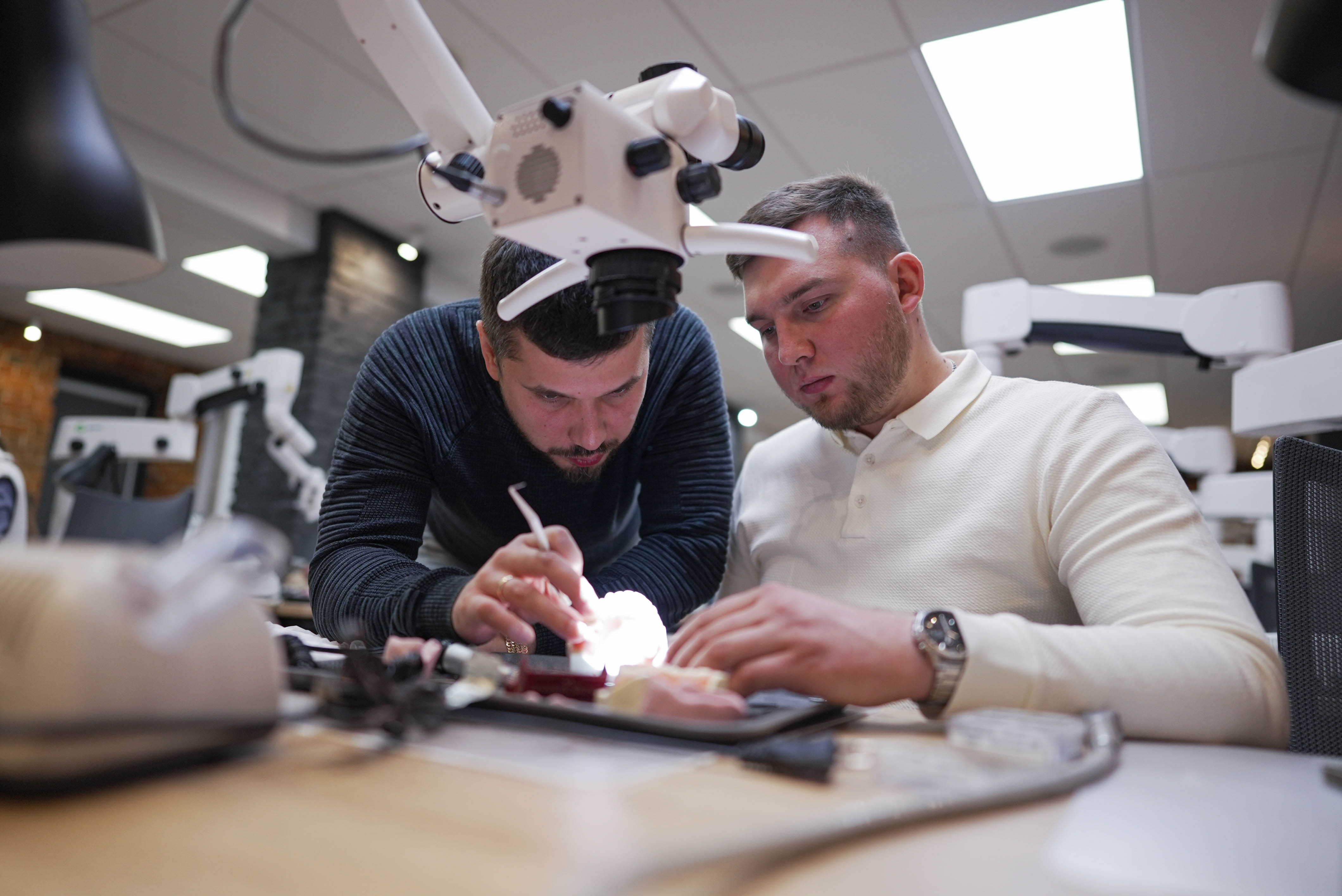 За два дня они полностью изучили керамические реставрации: от установки контакта с пациентом до разбора интересных кейсов, а также отработали полученные навыки на практике, разобрав все этапы процедуры вместе с опытным специалистом в области эстетической и функциональной стоматологии.